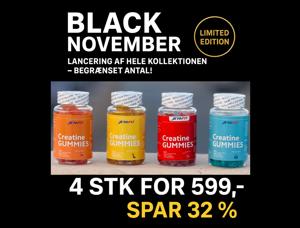 Jeyafit vingummi giver dig dokumenteret effekt med 3000 mg daglig kreatin – så du kan restituere hurtigere, yde mere og opbygge styrke og muskelmasse. Helt uden pulver. Helt uden besvær.