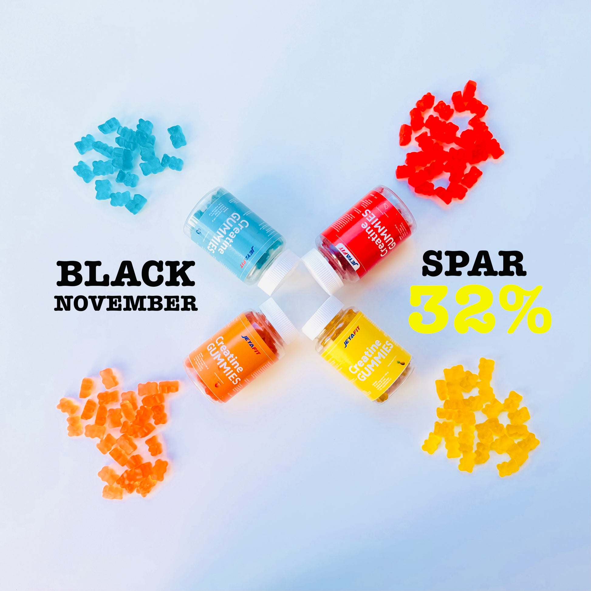 Navn: JEYAFIT – Kosttilskud med 100 % kreatin monohydrat vingummier med naturlig smag af frugter.