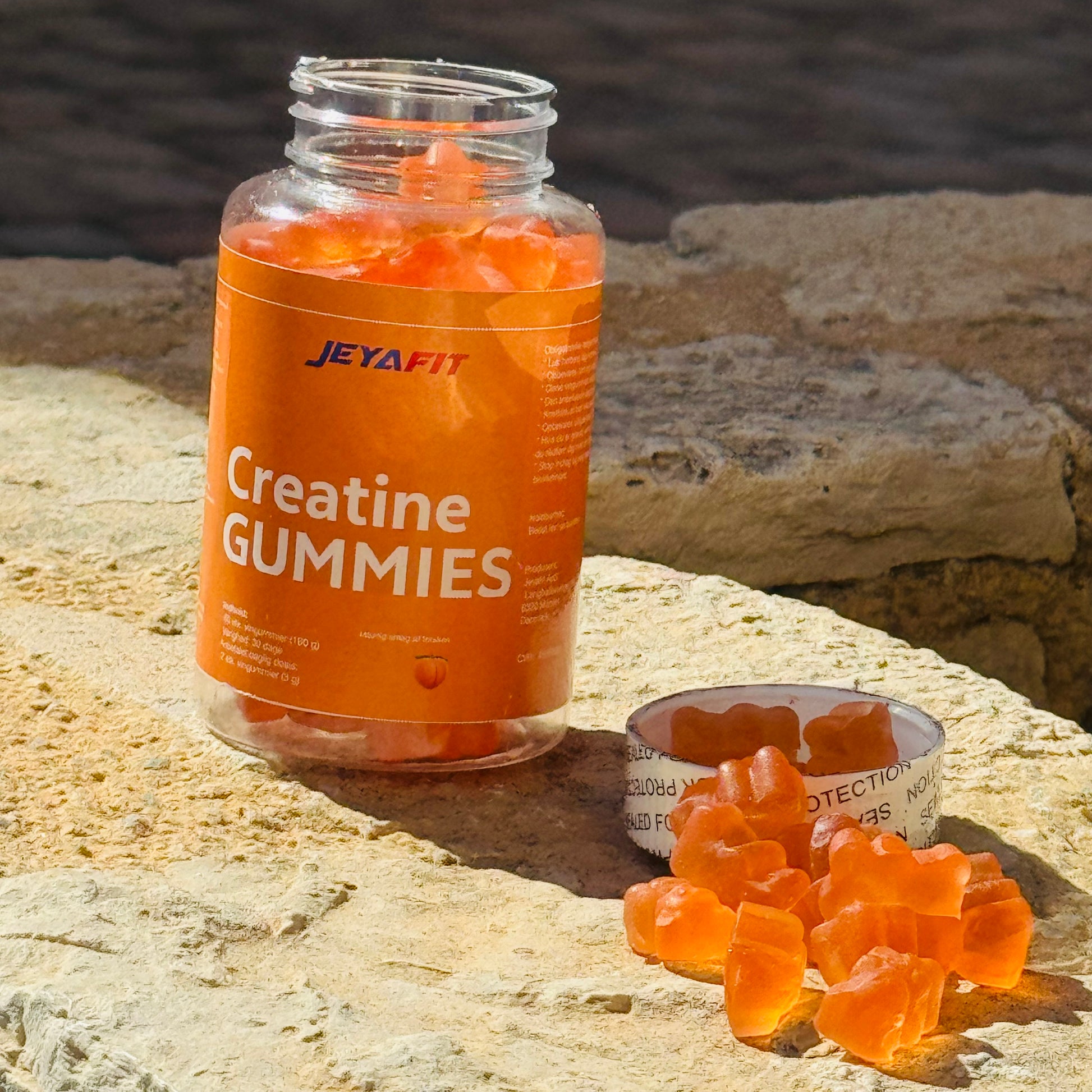 Med Jeyafit Kreatin Vingummier slipper du for besværet med opmåling og pulver – og får i stedet en vegansk, sukkerfri vingummi med naturlig fersken smag, som du faktisk glæder dig til at tage hver dag.