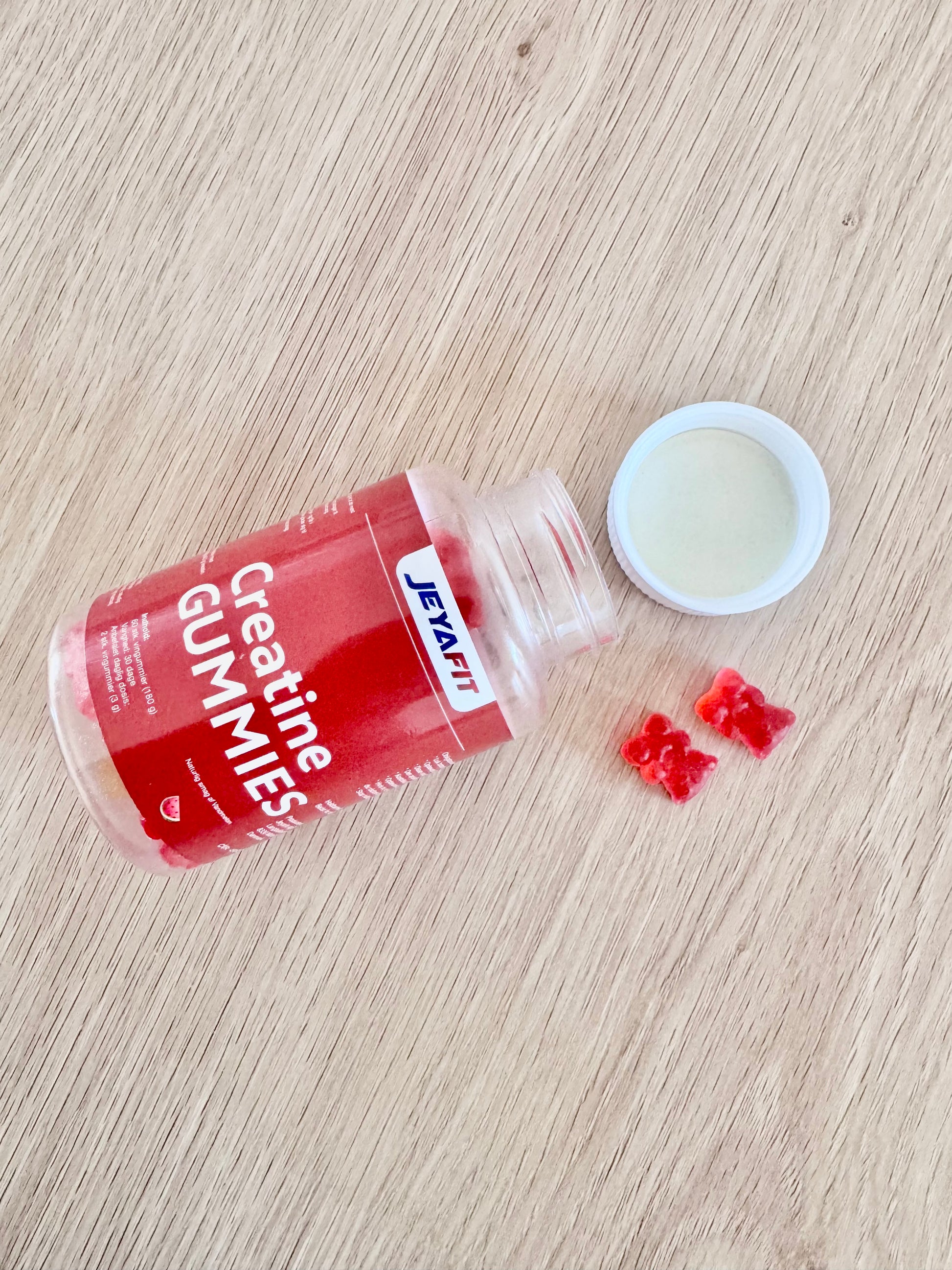 Med Jeyafit Kreatin Vingummier slipper du for besværet med opmåling og pulver – og får i stedet en vegansk, vingummi med naturlig frugt smag, som du faktisk glæder dig til at tage hver dag.
