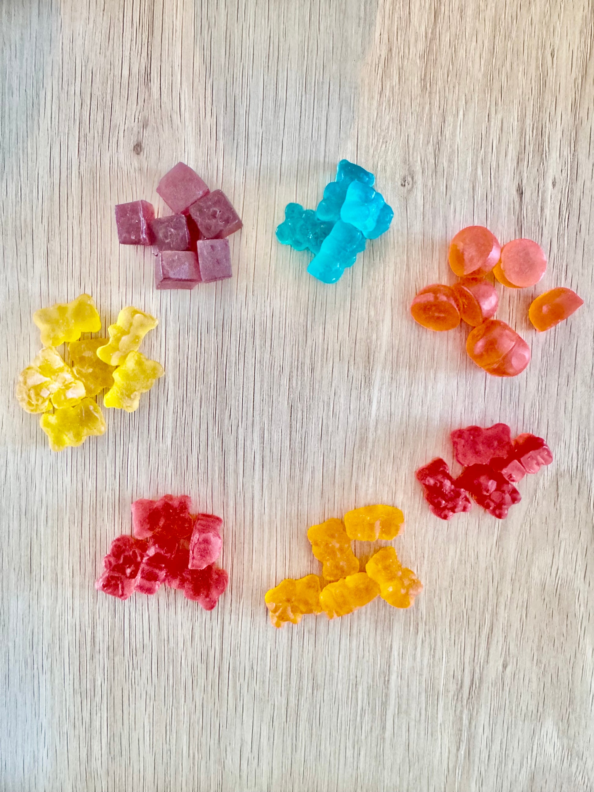 * Disse vingummier skal tygges og må ikke sluges hele.