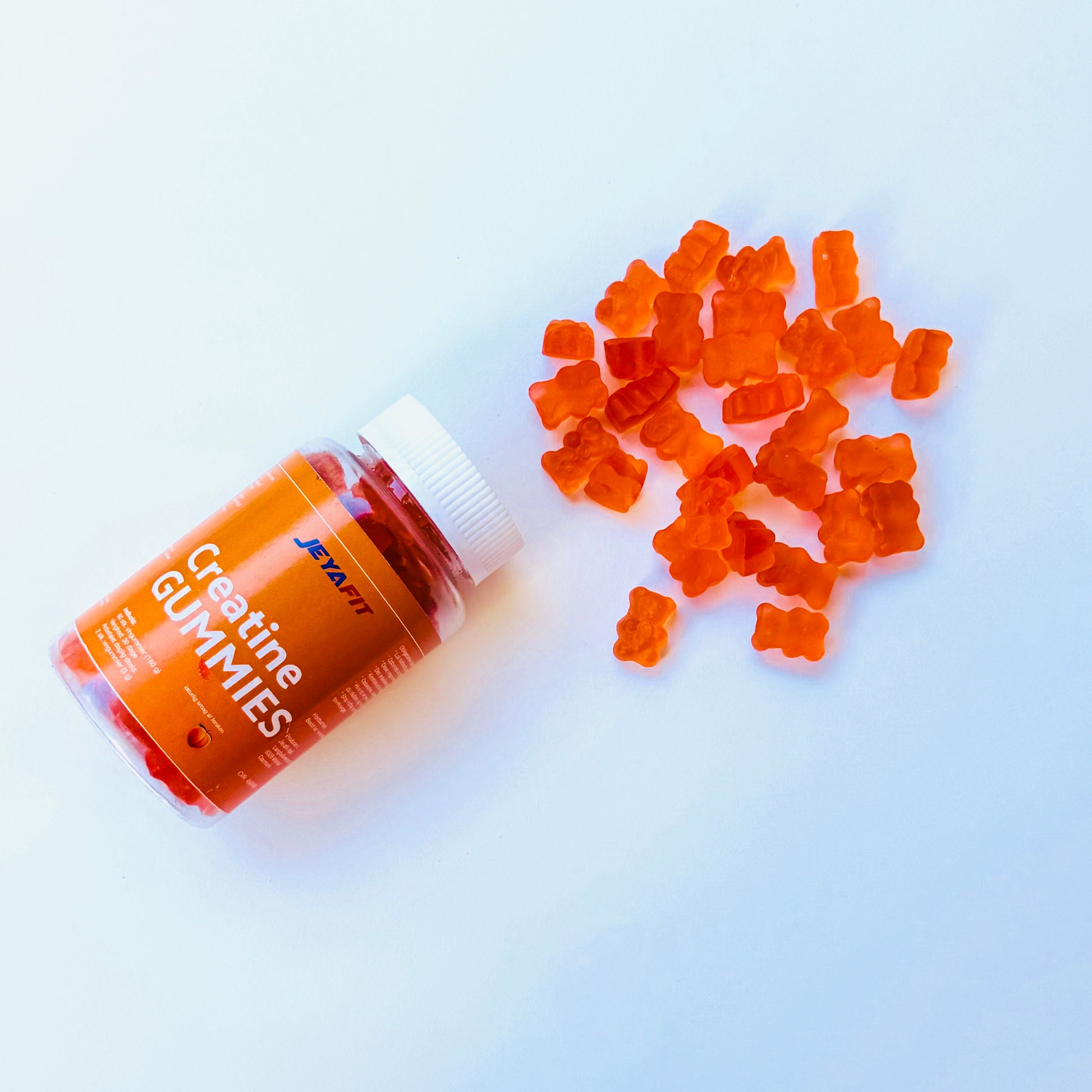 Navn: JEYAFIT – KOSTTILSKUD med 100 % kreatin monohydrat vingummier med naturlig smag af frugter.